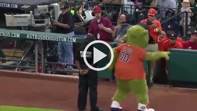 The Mascot Approaches The Security Man
