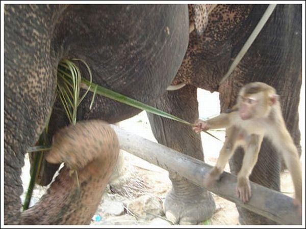 Cute Monkey Feeding Elephant - Annai Oru Aalayam