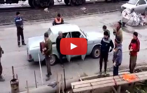 How many people came out of the car?